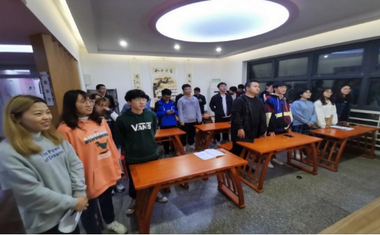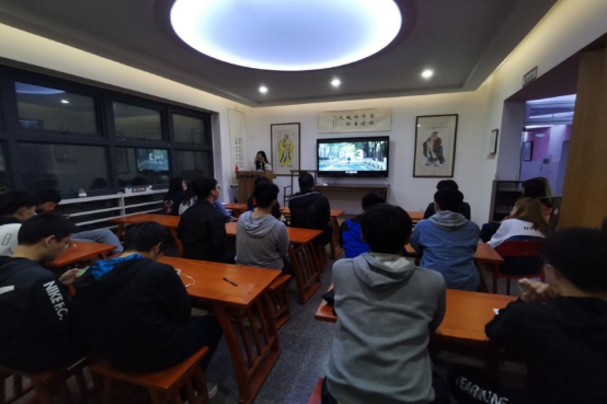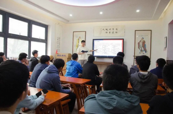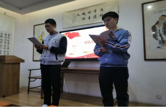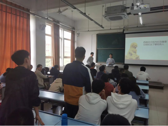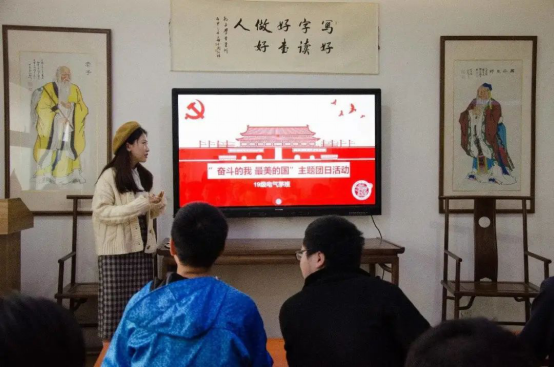 书院二楼,为热烈庆祝新中国成立71周年,贯彻落实“全团大抓基层”工作要求,加强对青年学生的思想政治引领,激发交大学子爱国荣校热情,2019级茅电班团支部组织全班同学开展“奋斗的我 最美的国” 主题团日活动,此次活动由茅班全体入党积极分子共同组织,由团支书朱宇华主讲。
