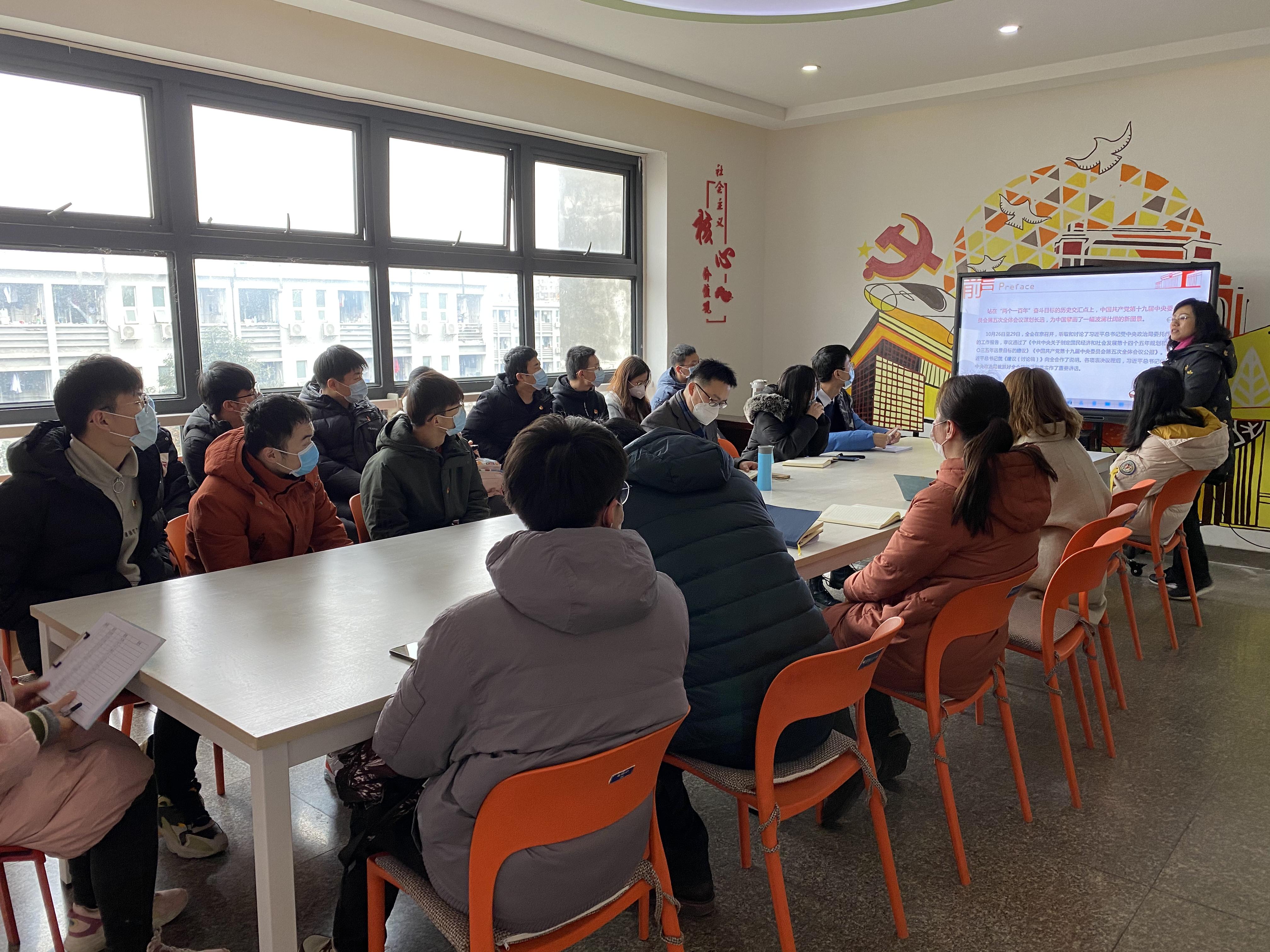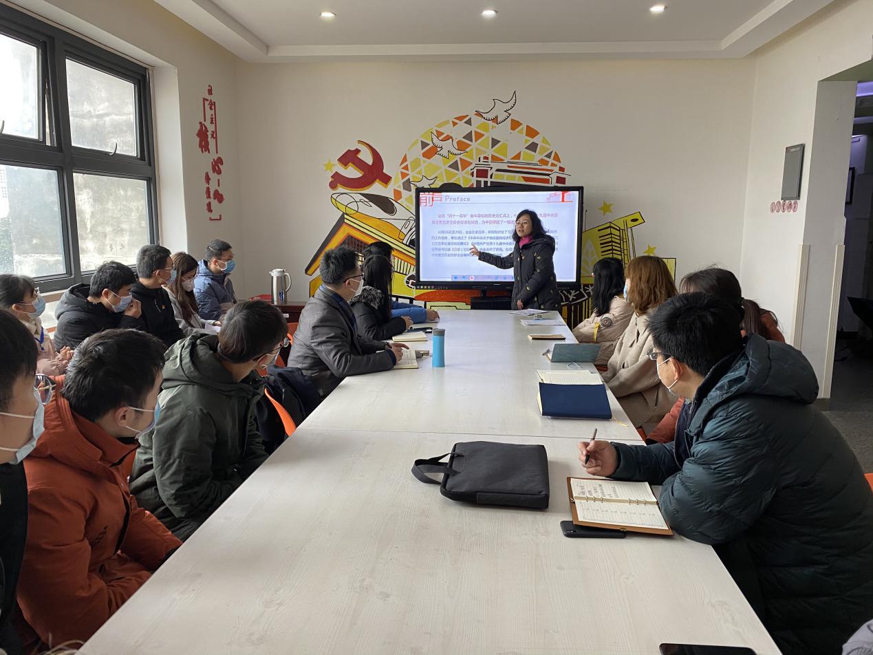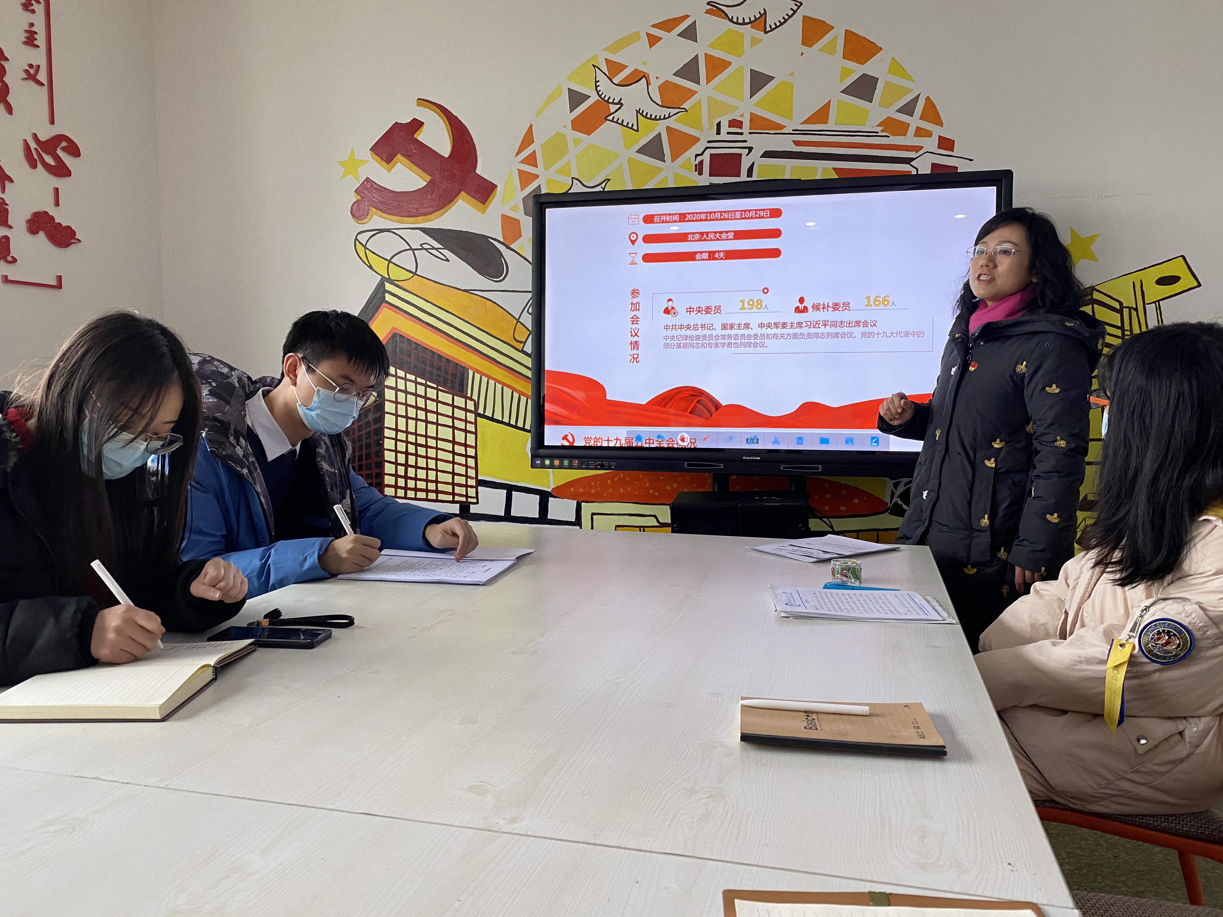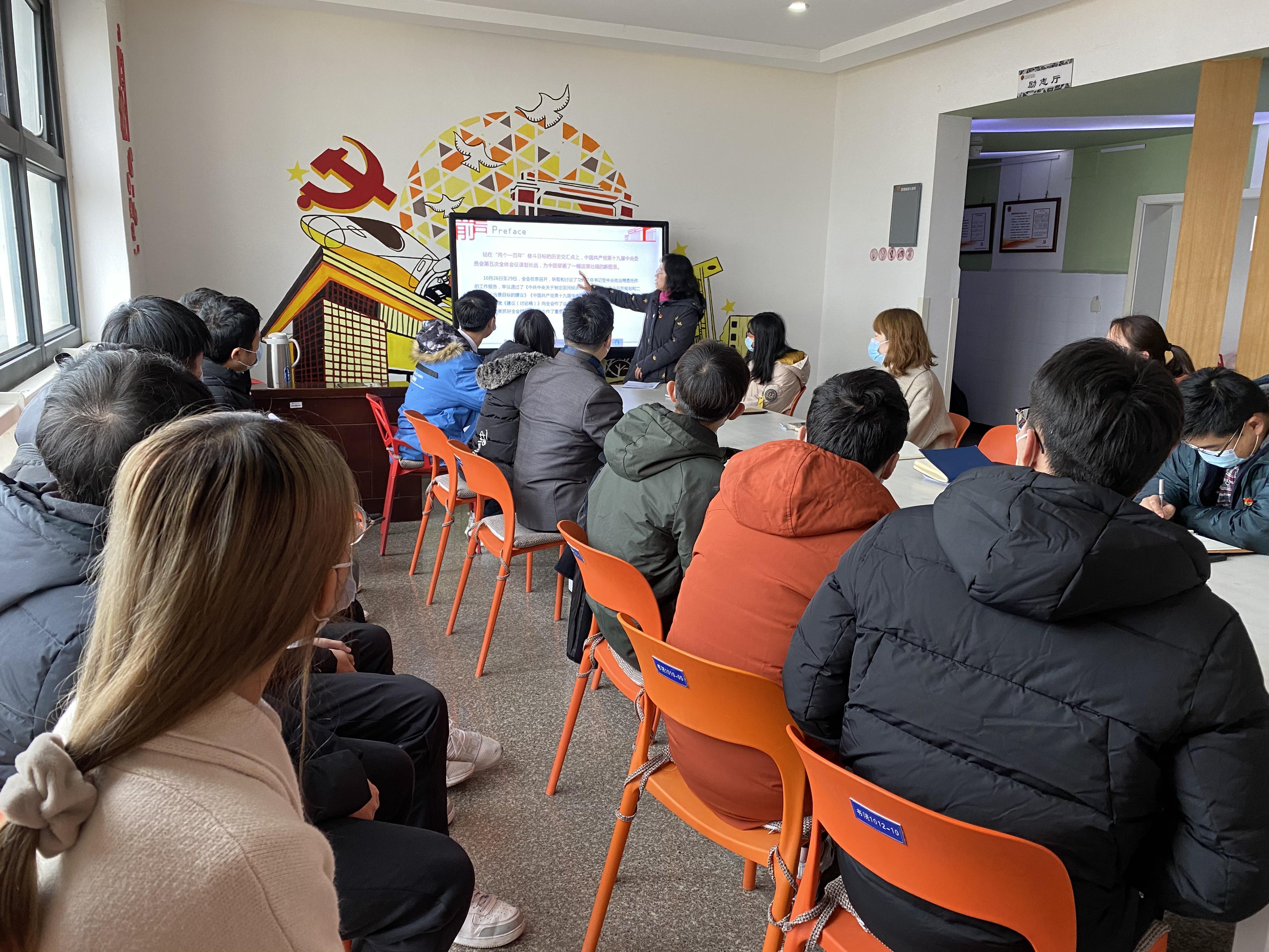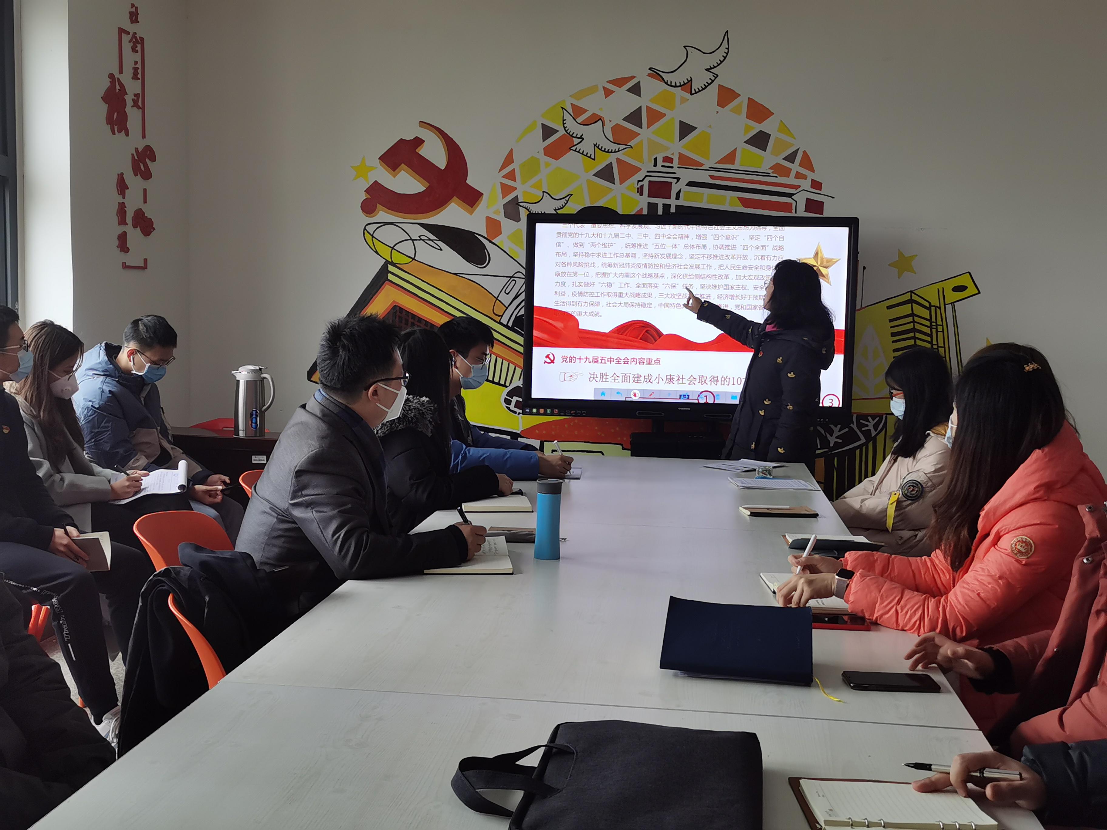 书院六楼“励志厅”开展了“深入学习贯彻党的十九届五中全会精神,全面学习解读公报内容”的党课活动。党课由王霞副书记主讲。