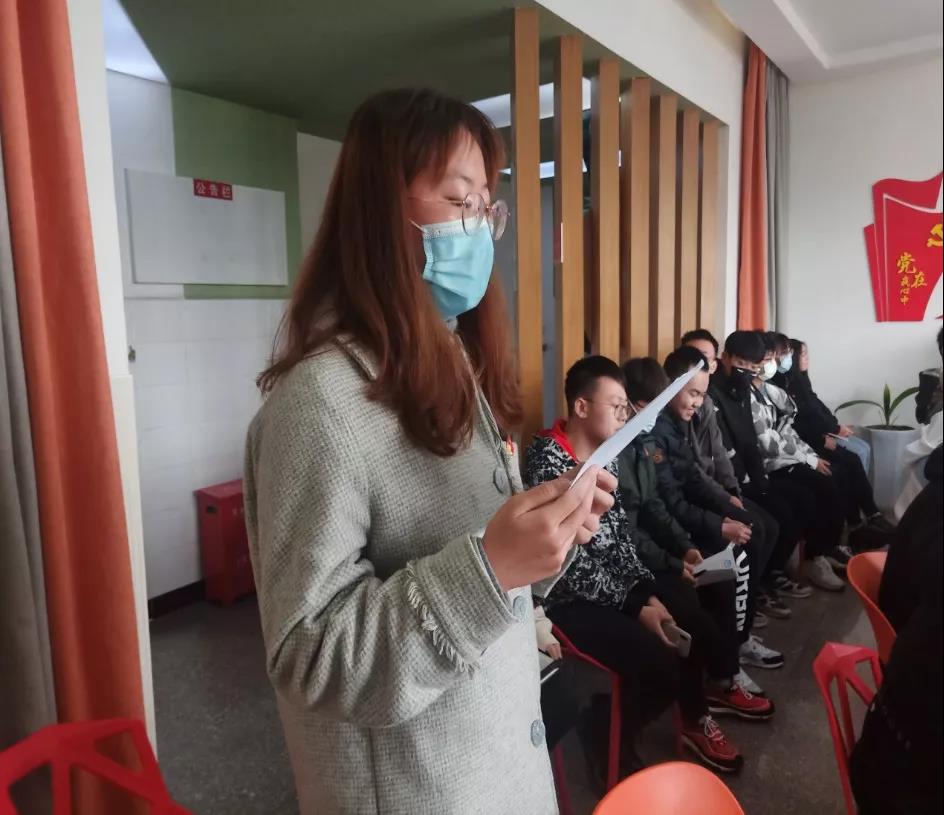 会议伊始,学生党支部书记任淑莉老师对此次会议内容做了简单介绍,并鼓励与会学生党员们分享观看《跨过鸭绿江》的感想。