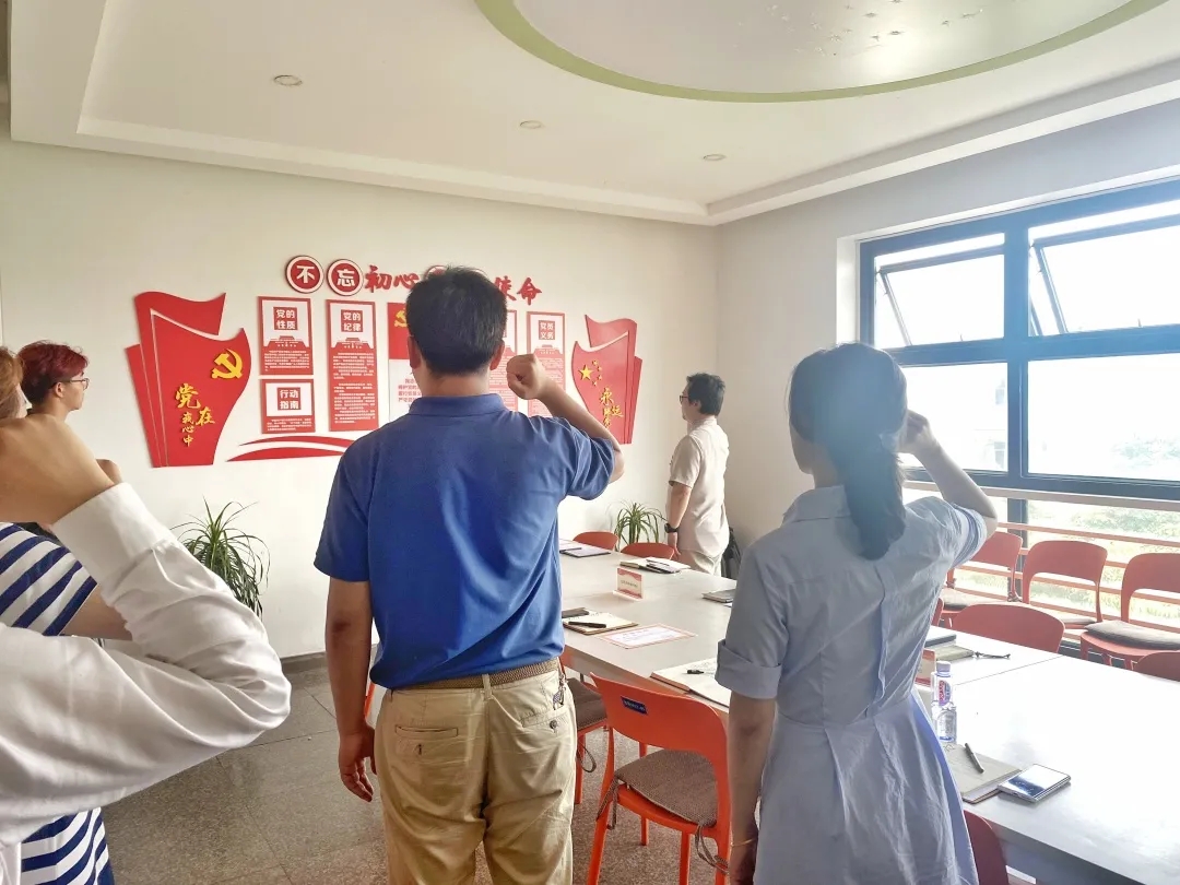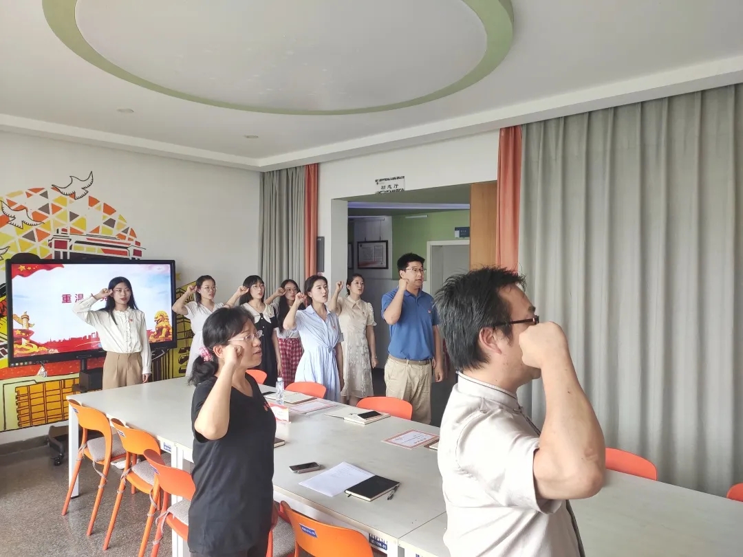 随后,甘霖书记带领全体教职工党员一起重温入党誓词,面对党旗庄严宣誓,向党再表初心和决心。