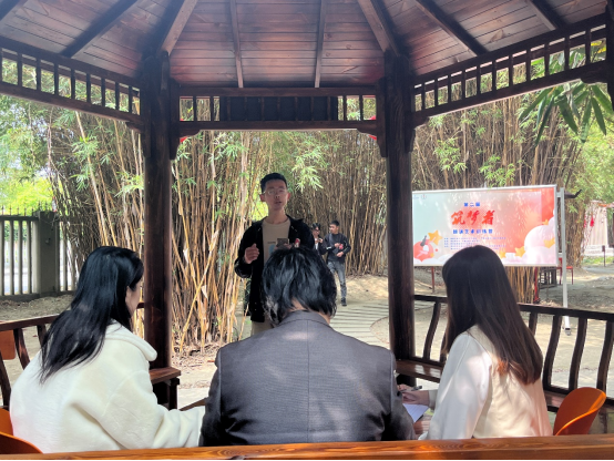 的15组参赛选手为在场同学带来了极富感染力和表现力的精彩表演,有童年至真至善的梦想,深沉浓烈的家国之爱,坚韧雄壮的浩然之气,亦有对美好生活的歌颂赞美 …竹影横斜,微风轻抚,沉浸式朗诵带给评委、选手、观众无与伦比的视听体验。