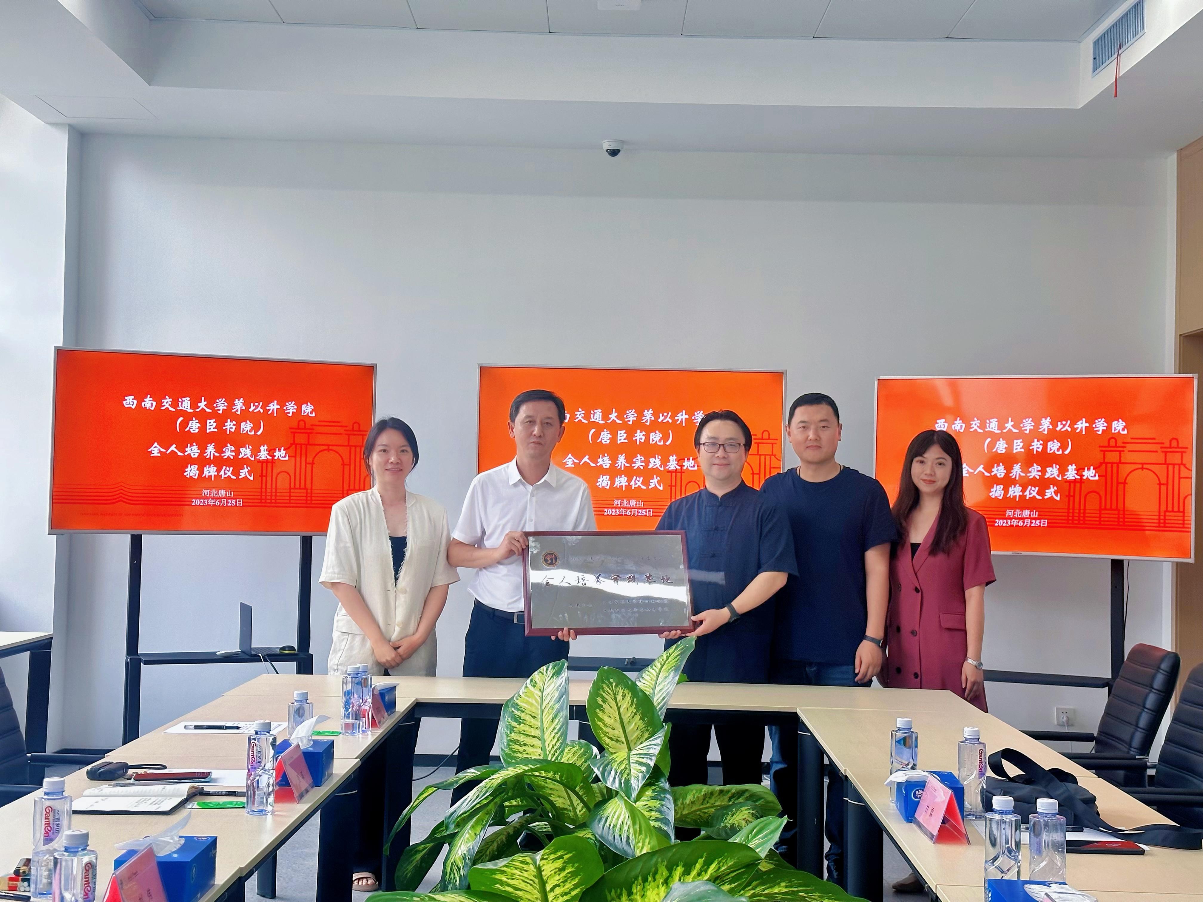 的到访表示热烈欢迎,并希望以“全人培养实践基地”的挂牌为契机,扎实做好育人工作,凝聚两院协同育人成效,落实落细立德树人根本任务。甘霖书记谈到,希望借助唐山园区实践基地,引导学生在感悟交大厚重历史底蕴的同时,厚植爱国爱校情怀,助力学生锤磨所学,成长成才。随后,双方在办学模式创新、沉浸式育人等方面进行了深入交流,并参观学习了唐山交大园项目。