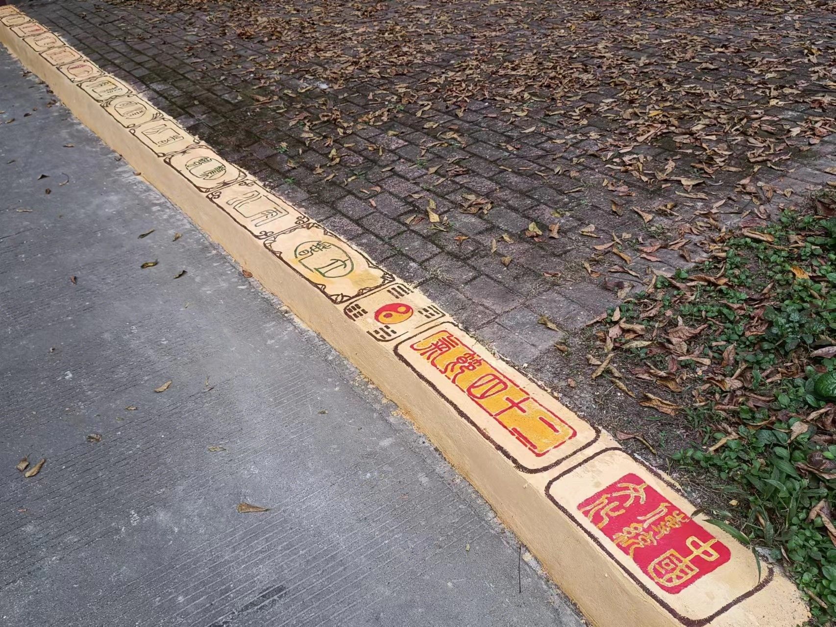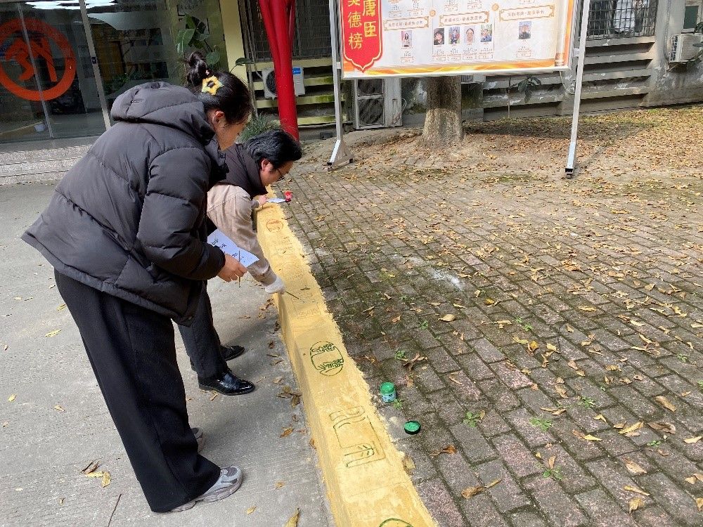 书院门前两侧的路沿上,用小篆绘制了别具一格的二十四节气,旨在通过书写二十四节气的方式,传承和弘扬中华优秀传统文化。