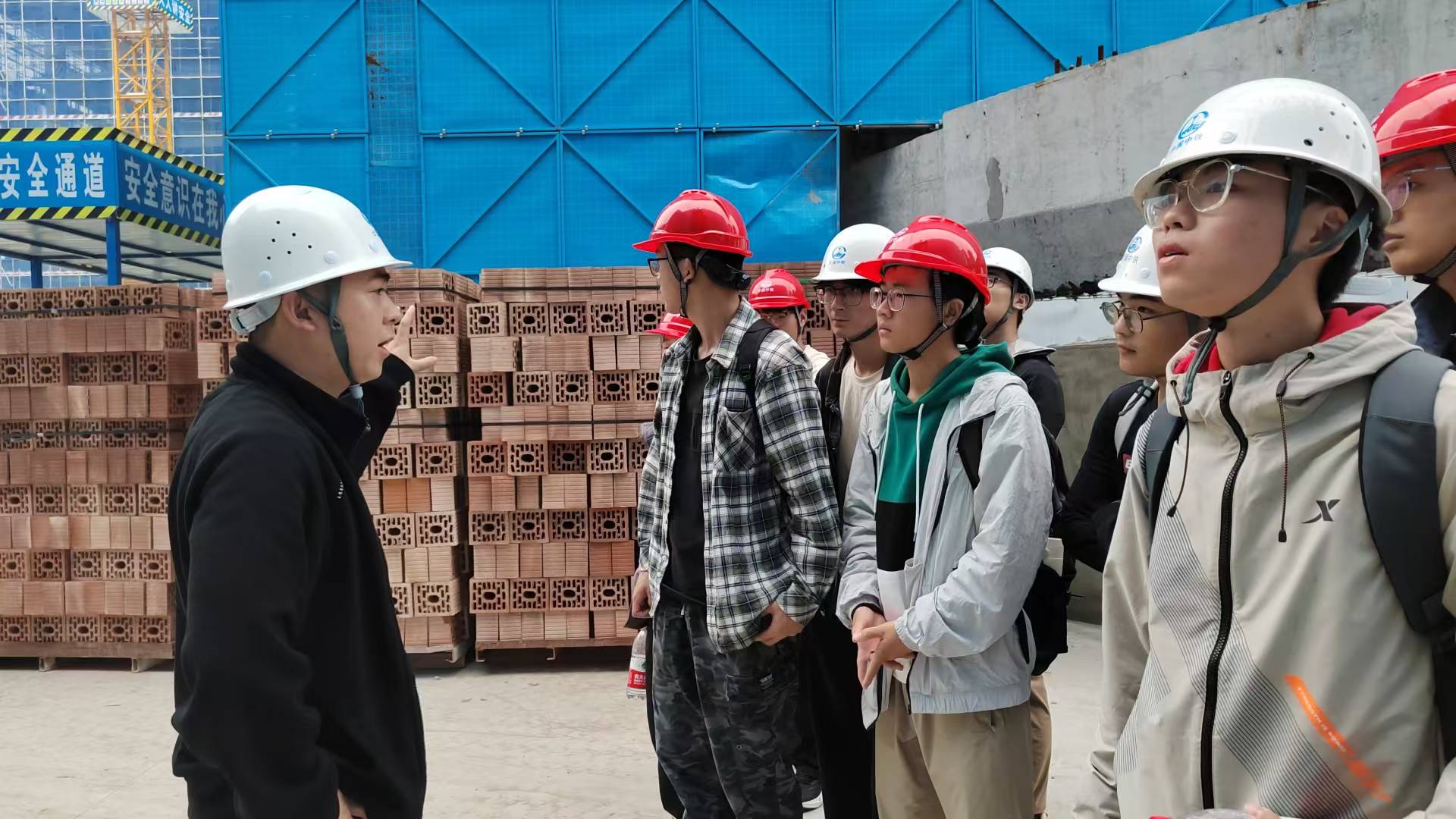 “实践课”第二环节,全体师生来到中铁二局大北项目部施工现场进行实地参观,践行茅以升先生“习而学”工程教育思想。佩戴好安全头盔后,在项目部负责人的带领下,同学们踏入了繁忙而有序的施工现场。同学们积极和项目负责人进行互动交流,通过实地观摩与亲身体验,大家对中铁二局在新型材料应用、工程设计创新、施工技术革新等方面的最新成果有了直观而深刻的认识。