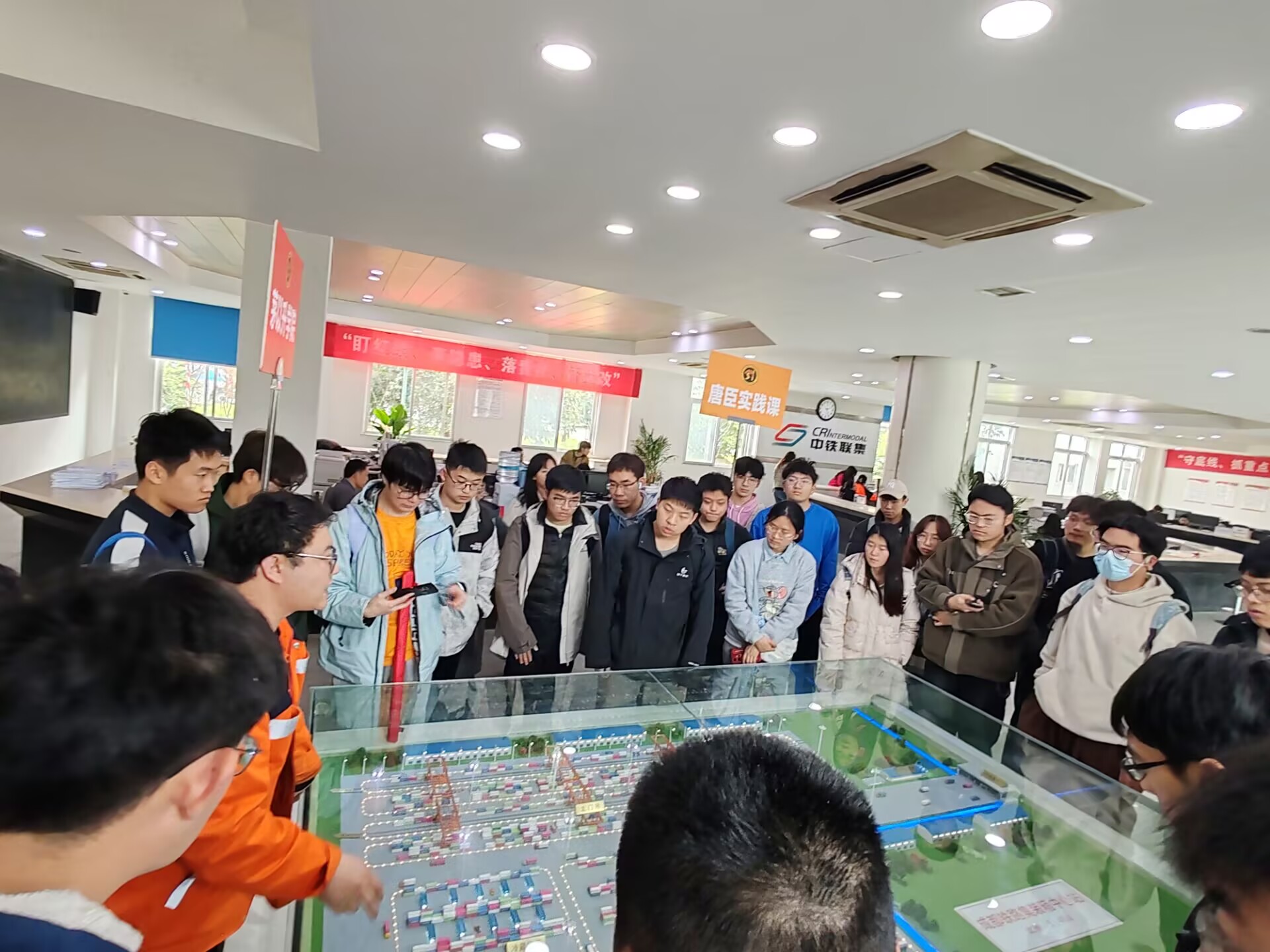 在参观过程中,刘嘉怡老师通过沙盘讲解,为同学们详细介绍成都国际铁路港口岸的主要功能区布局,涵盖进口整车、海关综合查验中心、集拼仓库、掏拼箱作业区、集装箱堆存区、设备车辆停放区、冷藏箱充电区以及办公区等多个区域。这一环节使同学们对港口的整体架构有了直观且清晰地认识。