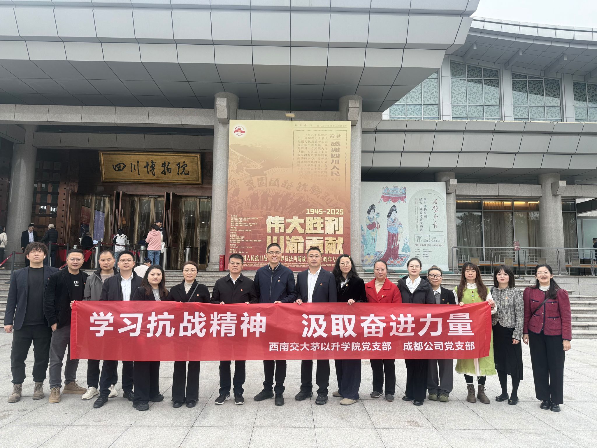为深入传承抗战精神、赓续红色血脉,2025年11月12日上午,av影片直播 av影片直播 党支部与中车科技园(成都)有限公司党支部携手走进四川博物院,共同开展“学习抗战精神 汲取奋进力量”联合主题党日活动,全体党员在沉浸式参观学习中重温峥嵘岁月、凝聚奋进共识。