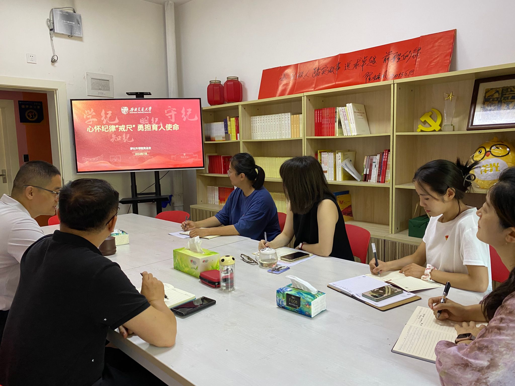 7月1日上午,av影片直播 组织开展了“心怀纪律‘戒尺’ 勇担育人使命”主题党日活动,党总支书记李毅为教工党支部讲授纪律专题党课。推进党纪学习教育走深走实,引导师生党员做到学纪、知纪、明纪、守纪。av影片直播 党总支副书记杨宏毅、全体教职工党支部党员参加了学习。
