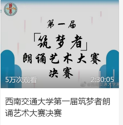 无声的文字,有声的朗诵。在本届“筑梦者”朗诵艺术大赛中,涌现出了一位位充满朝气、热爱诗词的筑梦者朗诵人。比赛会有胜负,技巧会有高低,但这些选手们对朗诵艺术之美的感受是共通的。在抑扬顿挫起承转合朗朗诵读中,他们通过对青春的讴歌对祖国的热爱,展现出诗歌朗诵的艺术魅力,也展示出我们交大青年蓬勃向上的朝气与活力本届比赛不仅仅展现了我们交大师生的风采,更为大家提供了一个对中国诗词文化和朗诵艺术交流学习的平台,让诗词之美走出书本,来到我们每个人身边;让我们咀嚼着诗歌的芬芳,沐浴经典,陶冶心灵,在筑梦者中筑造梦想,感悟人生。